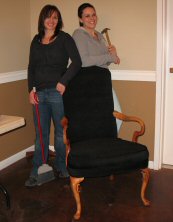 Jennifer and Jackie discussing her wingback chair |