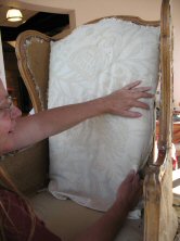 Lisa removing decorative upholstery tacks |