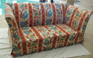 Chair cushion rebuilt with new foam and batting |